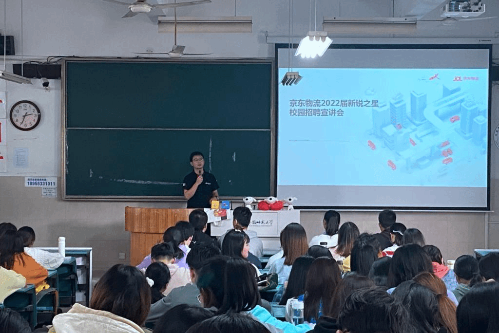 在与同学们的交流中,他也展示了京东物流的自动化、无人化设备,以及配送服务。之后,他分别从高质量就业、助力乡村振兴、支持实体经济、推进青流计划、志愿抗疫救灾、服务世界级赛事六个方面介绍了企业的社会责任,令同学们感触颇深。宣讲最后,他生动地列举了许多从基层员工到专业员工劳模的荣誉,并从京东物流对员工的全面关怀和立体化学习生态培养等方面展现了企业的人文关怀。同时,他从基层管理者方向和专业方向详细介绍了新锐之星培养全景图,通过招聘流程向同学们展示了面试的程序。会后,宣讲人员与同学们进行了进一步交流,为同学们答疑解惑,宣讲会至此圆满结束。