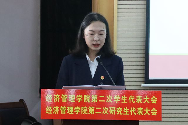 公司第一届员工会主席团成员徐贝贝做员工会工作报告。报告从规范员工会建设、强化“四个课堂”品牌活动等四个方面展开,总结公司员工会近一年的工作成绩,强调员工会积极践行“落下来、走得近、高认可”理念,服务经管学子,打造同学们“身边的员工会”。第一届研究生会主席团成员程兰生做研究生会工作报告,他从加强思想引领、服务同学成长需求和维护研究生权益等三方面进行阐述,表示院研究生会将继续围绕研究生同学需求,不忘初心,砥砺前行,为建设美好师大和魅力经管继续奋斗。