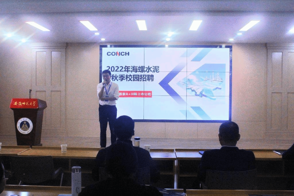 宣讲会正式开始前,同学们一起观看了几段海螺集团的招聘宣传视频。宣讲会伊始,何鑫以学长的身份积极鼓励毕业生们加入海螺,并以“我们是谁”设问,介绍了海螺集团现有成就和发展情况。他表示,海螺企业拥有着优质的企业文化、良好的办公环境和优美的厂区景色。随后,他通过专业详细的图表,就“为什么选择我们”向同学们介绍了公司人才发展晋升机制和薪酬福利,并详细介绍了海螺的招聘需求与应聘流程。紧接着,赵创谋、何洋洋也分别介绍了海螺水泥上海地区与皖北地区公司的概况,使同学们对海螺集团有了更深入的了解。会议最后,何鑫解答了在场同学最为关心的薪酬待遇问题,鼓励同学们把握机会,勇于尝试,有意愿的同学们也积极向企业投递了简历进行面试。