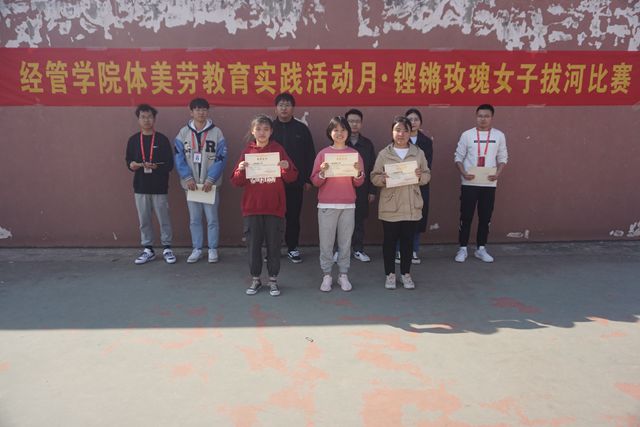 首先进行的是“铿锵玫瑰”拔河比赛预赛,由经济学类3班对阵经济学类1班,工商管理2班对阵经济学类2班,工商管理5班对阵ACCA方向卓越班,工商管理3班对阵工商管理4班。随着比赛的开展,在场观众的热情瞬间被点燃,都在整齐划一的进行高声助威,观众的加油声、参赛人员的口号声以及老师们指导的声音一声高过一声,层层声浪在赛场上此起彼伏。最后,工商管理1班、工商管理2班、经济学类3班、工商管理5班以及工商管理4班进入半决赛。进入半决赛的队伍积极进行布局调整,老师们齐上阵进行比赛总结,以更加饱满的状态迎接接下来的比赛。接下来的比赛也如火如荼的进行,加上更为充分战术调整,比赛更加热烈。最终经济学类3班、工商管理4班和工商管理5班在激烈的角逐中进入决赛,三支队伍则以更加饱满的状态迎接即将到来的决赛。比赛随着裁判的哨声展开了最后的角逐,三支队伍都尽力发挥出自己所有的实力。