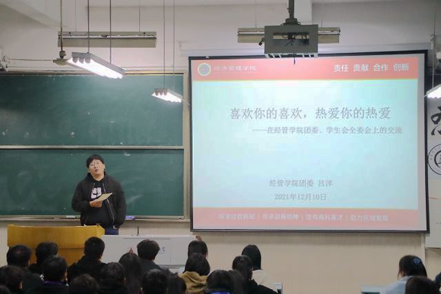 团委、员工会主席团成员依次上台发言。他们对各分管部门工作进行总结,分享了自身工作的经验建议,并对团委、员工会全体成员成长给出具体意见建议。