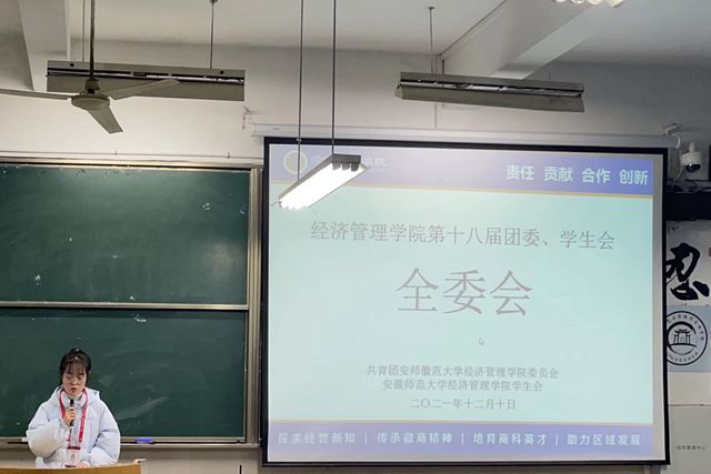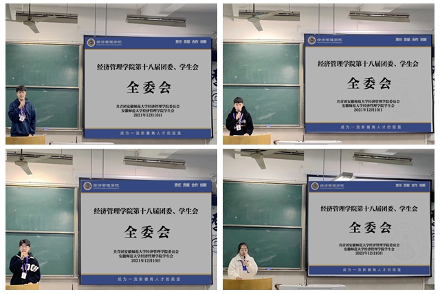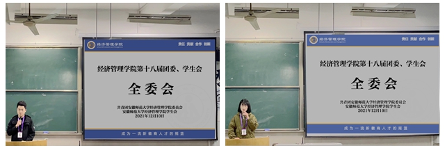 团委、员工会各部长团成员代表依次上台汇报自开学以来本部门的基本工作情况、工作中存在的一些问题以及不足及相应的解决方案。台下的委员们认真倾听汇报并反思自己的工作情况。
