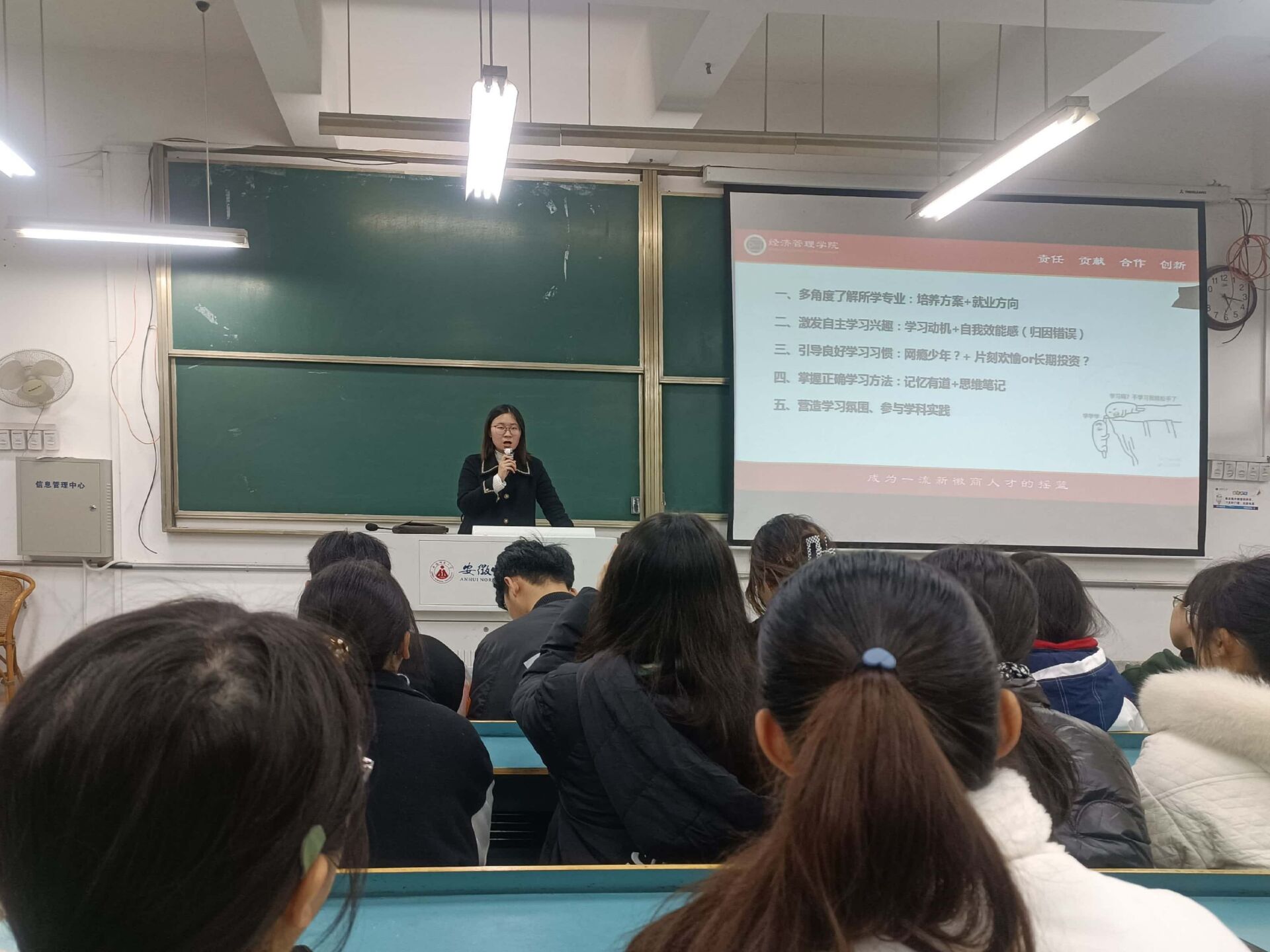 辅导员吴敬之老师从多角度了解所学专业、激发自主学习兴趣、引导良好学习习惯、掌握正确学习方法、营造学习氛国、参与学科实践五个方面对同学们进行学业督促。