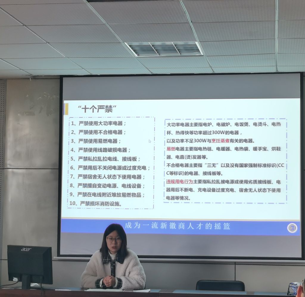 首先,吴敬之老师列举了一些因违规用电而造成的安全事故实例来让同学们提高警惕。接着,她向同学们介绍了“十个严禁”。