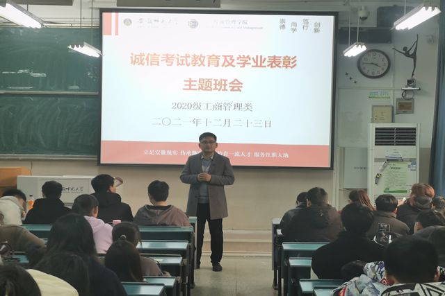 为了进一步强化员工的考前思想态度,同时鼓励上学年学业表现先进员工,培养积极进取的优良学风,12月23日下午,m88官网2020级工商管理类召开了诚信考试教育暨学业表彰主题班会,班会由辅导员胡亮亮主持,2020级工商管理类全体员工参加。