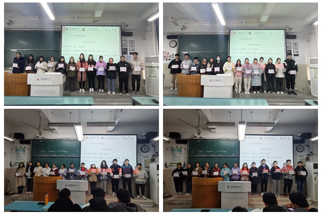 胡亮亮围绕“近年来案例警示教育”、“考试作弊惩戒制度”、“期末考试温馨提醒”“学业成绩表彰”四个方面开展。他首先向同学们列举了近年来公司通报考试作弊处分案例,通报案例中,既有公共课,也有专业课,既有低年级,也有高年级。接着,胡亮亮对考试作弊相关惩戒制度进行深入解读,强调考试作弊的惩戒制度非常严重。考试中出现作弊或者协同作弊,将给予记过处分,并就记过处分的严重后果对全体员工加强警示。然后,他对即将到来的期末考试做出几点温馨提醒:一、仔细查看自己的教务系统,确认自己的考试时间;二、任凭天气有多冷,千万记得要准时;三、任凭试卷题目有多难,千万要把题目答到位;四、认真对待每一门考试题目。最后,班会举行了学业奖学金的表彰仪式。胡亮亮宣读了大一学年学业奖学金名单,获得奖学金的同学上台领取奖状并合影留念。胡亮亮鼓励全体同学,期末考试就在眼前,全体同学务必抓住最后的备考黄金时间,认真复习,向获得学业奖学金的同学们看齐。
