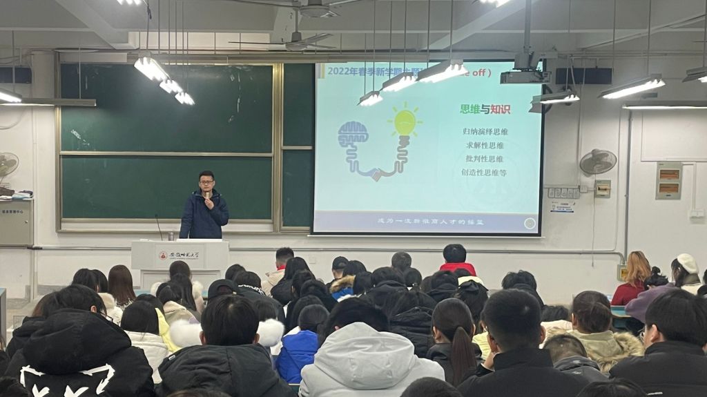 新学期伊始,甘老师就“上好第一堂课”、“防范网络诈骗”、“调整作息时间”以及“注重宿舍卫生”等几个方面,提出了具体要求。以“思考三分,扪心三问”为出发点,提出大三学年的“先有目标,再有计划,后有行动”三步走战略,利用“缺什么补什么”思维制定合理计划,并付诸于实际行动。甘伟通过“思维与知识”、“通识和专业”、“个性与从众”、“无用和有用”、“好奇心与功利心”、“价值理性和工作理性”、“成人与成才”七个方面,跟同学们交流了大学期间需要做好的几个权衡。甘伟分析了当前员工“为了学而学”固化思维的普遍现象,举例说明了当代老员工选择从众、选择内卷、盲目恶性竞争等一系列同质化问题。并通过讲述通识教育和专业教育的差异性,强调在巩固专业知识教育的同时扩大自己的知识领域,并不断坚持通过做事来展示自己,力求在实现个人的理想价值的基础上实现集体乃至社会的理想价值,做一个有理想、有本领、有担当的中国青年。