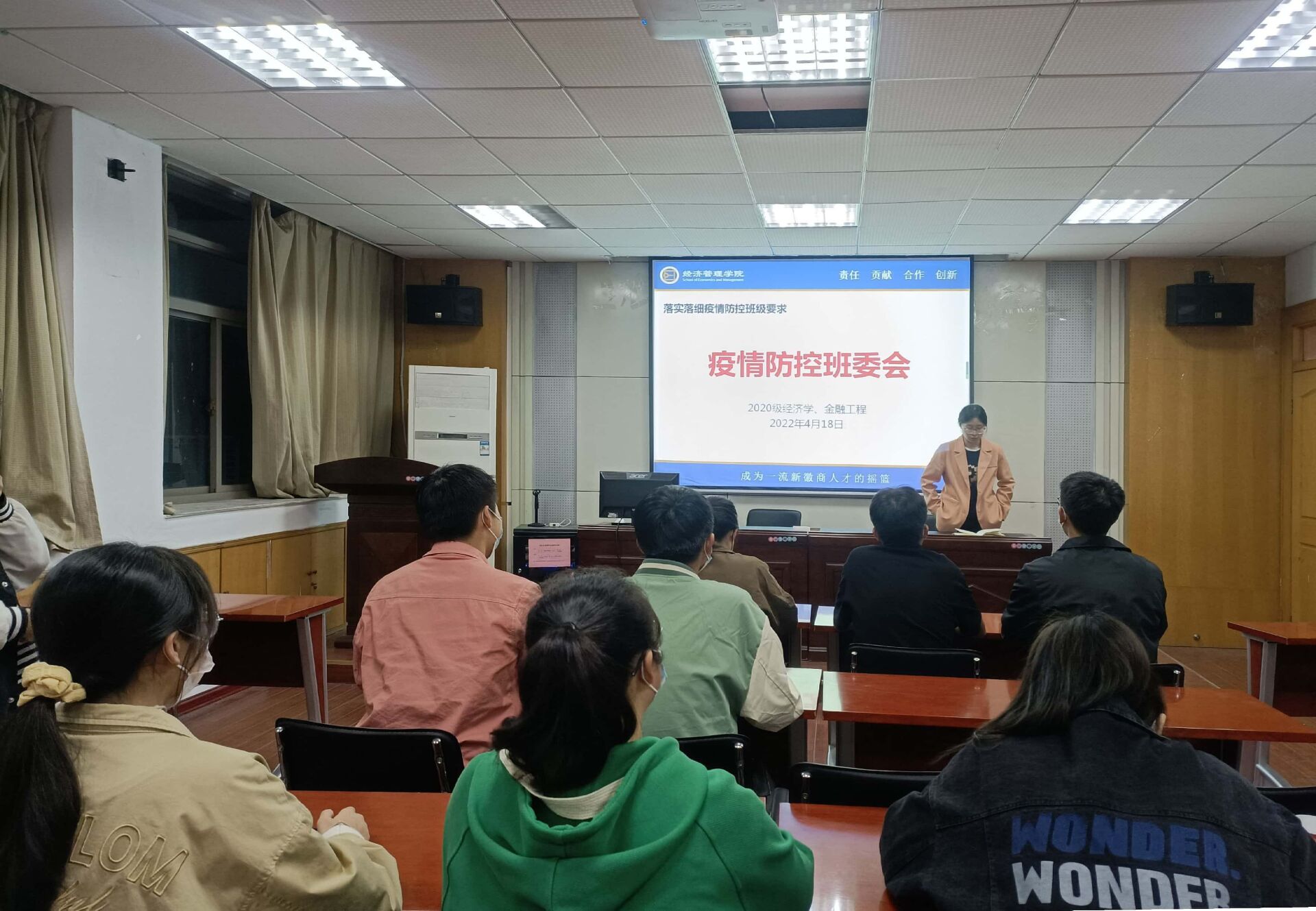 当前,疫情防控形势严峻,为了进一步落实班级内疫情防控要求,保障同学安全和心理健康,辅导员吴敬之召开此次疫情防控主题班委会,经济学、金融工程专业部分班委参加此次会议。