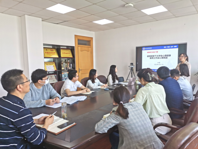 会议中,朱蕾从疫情背景出发,结合自身工作经历,指出当代老员工常见的心理情况,并以疫情背景下老员工面临的就业心理为例,提出了心理调适建议。她指出,老员工群体是个体由青年期到成年期成长过程中一个特殊的群体。集多种特殊性于一身,具有处于“第二次心理断乳期”、“边缘人”地位,处于“心理延续尝负期”,多重价值观、人格的再构成等心理内在原因。而在疫情影响下,老员工就业时期同时存在着环境诱发因素,使得老员工的心理健康状况比个体一生中的其他阶段人群及处于这一时期的其他群体相对较低。一般较为常见的有以下几种问题:一是心理压力与焦虑,二是心理期望与失落感,三是就业观念不合理,四是就业人格缺陷,五是就业心态失衡。针对上述问题,她指出,大四阶段,面临就业等压力,本身就是我们认识和适应社会的一个过程,遇到心理冲突、困惑,产生一些不良情绪是正常表现,可以从以下几个方面来调节:一是接受客观现实,调整就业期望值,二是充分认识职业价值,树立合理的职业价值观,三是认识与接受职业自我,主动捕捉机遇,四是坦然面对就业挫折,提高心理承受力,五是调整就业心态,促进人格完善,六是开拓进取,勇于创业。