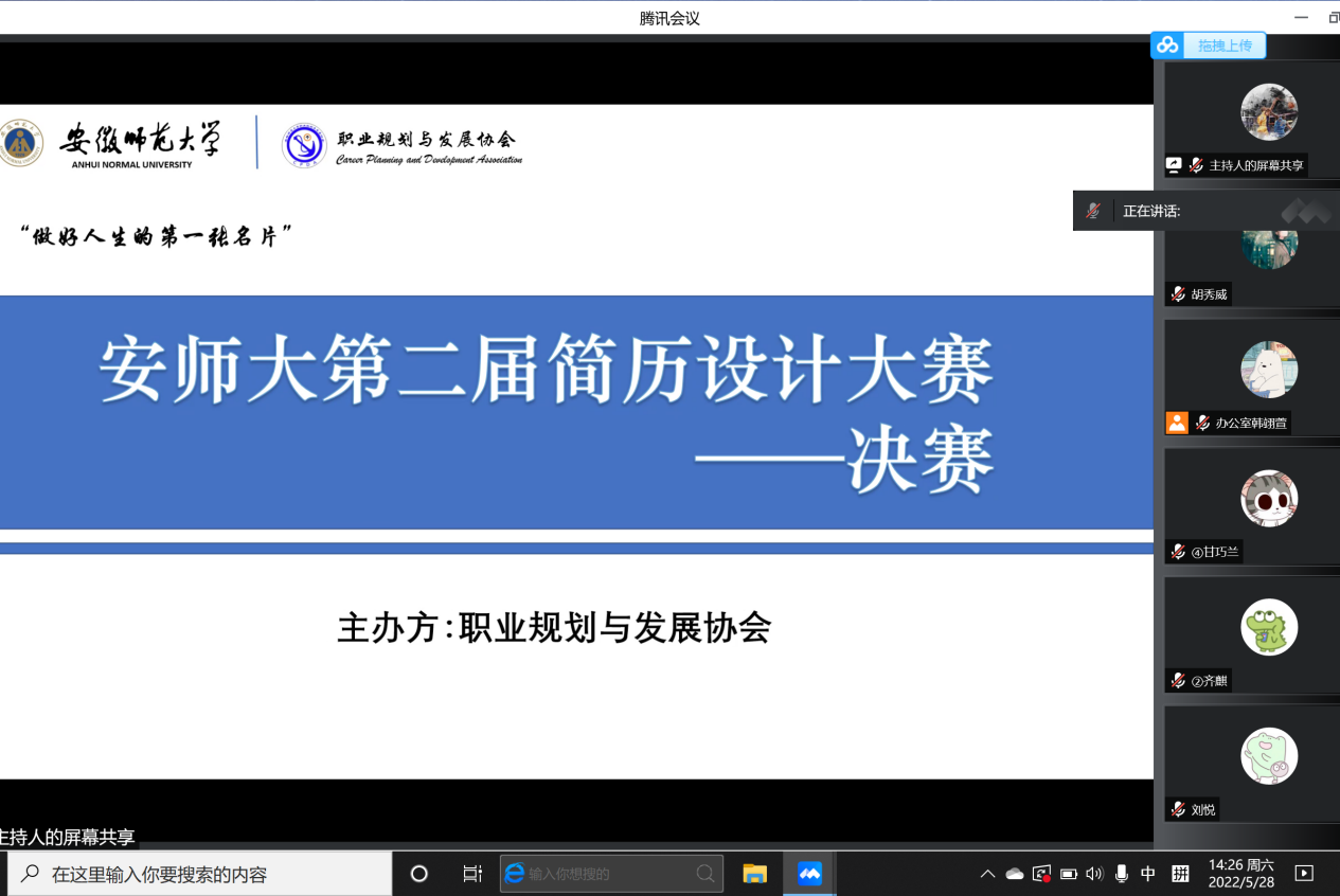为帮助同学们提升简历设计能力,m88官方网站登录地址职业规划与发展协会于5月28日举办第二届简历设计大赛决赛。决赛采取线上模式开展。m88官网教师何建华、茆巍、倪蕾及张想想作为评委参加会议,参赛选手及部分协会会员在线参加。