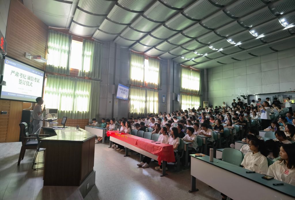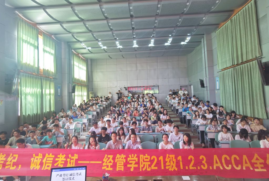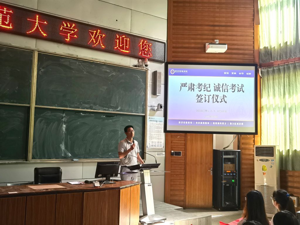 2022年6月8日下午3点,在版权所有 m88官网-登录入口教学楼1号楼105教室,m88官网举行“严肃考纪 诚信考试”签订仪式。公司党委副书记陈刚锋参加并讲话,由辅导员刘胡海主持,m88官网2021级工商管理类一、二、三、ACCA班级全体同学参加。
