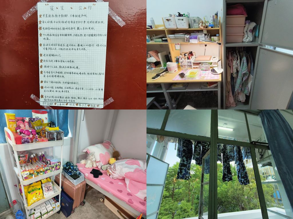 绝大多数宿舍总体情况较好,地面无杂物堆积,房间整洁干净,物品摆放有序,并制定了个性化宿舍公约以便于健康规律生活,个别宿舍还有较大的提升和改进空间。对此,相关宿舍纷纷提出整改措施,表示将即刻整改,严格按照内务标准进行整理,努力创造干净整洁的优良宿舍环境。内务检查员参照内务标准对宿舍内务进行打分,最终评选出男女生优秀宿舍共6间,分别为1#316、1#318、1#315、8#305、8#205及8#309。