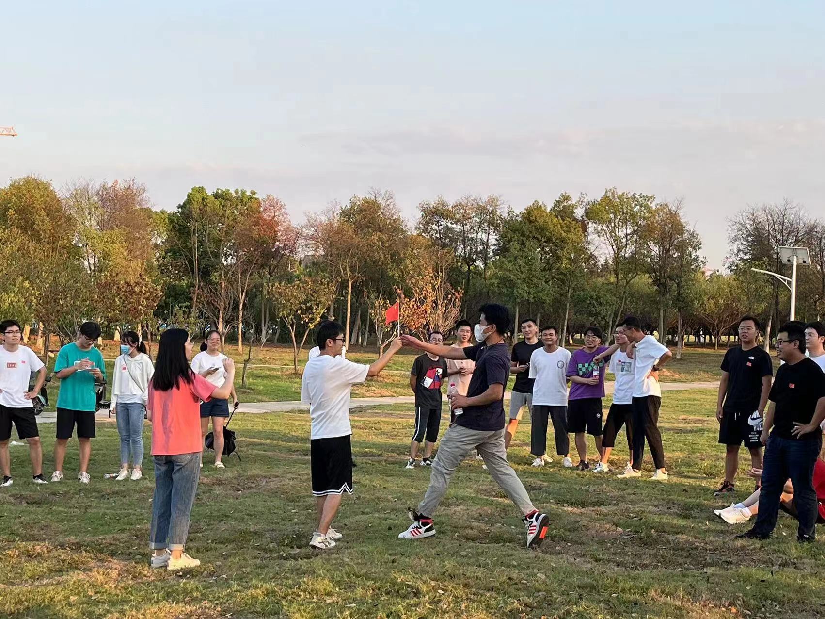 跃动青春,喜迎国庆。为加强同学间交流互动,丰富留校生课余生活,10月2日下午,m88官网研会于樱花林举行了“欢度国庆”课余实践活动。参加此次活动的留校研究生大约50人。