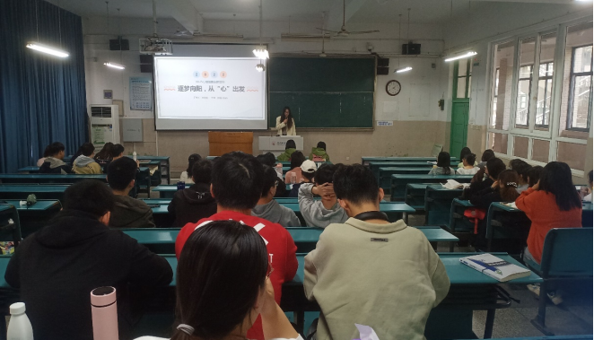活动伊始,心理健康委员邓佳佳向同学们介绍了此次活动举办的目的及意义,向同学们普及了缓解压力的方式,鼓励大家多运动,平衡睡眠时间和学习时间。接着同学们一起观看《大城市还是小县城》的影片。影片以非常轻松幽默的口吻揭露了大家选择城市的心理历程以及选择城市还是回乡的两幅图景,引导同学们做出长远的未来规划。