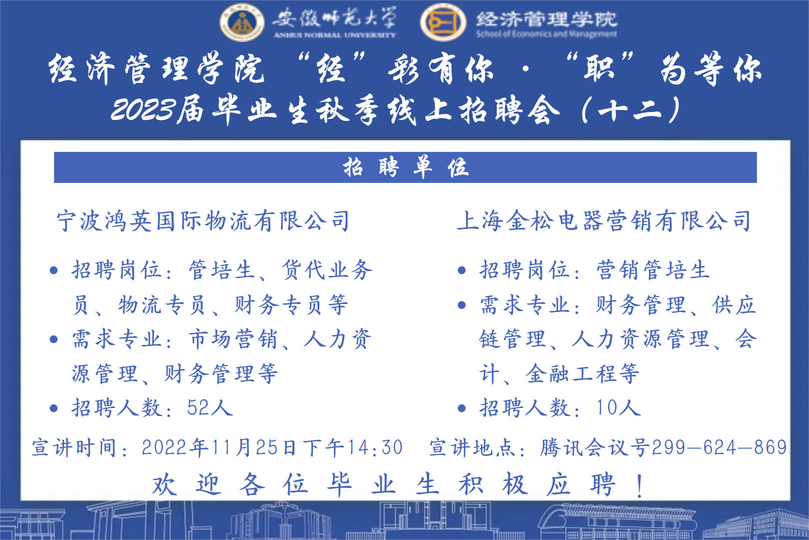 【就业预告12】11月25日企业专场招聘会