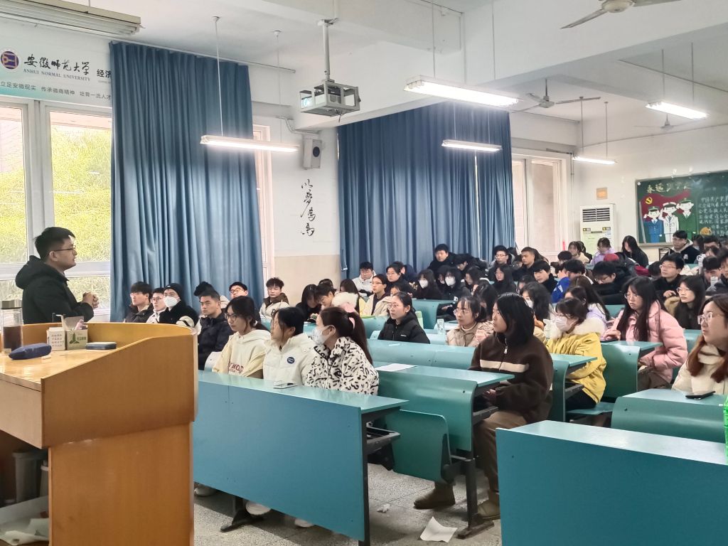 班会中,胡亮亮围绕“近年案例警示教育”、“考试作弊惩戒制度”、“学业成绩表彰”、“其他温馨提醒”四个方面展开。他首先结合公司通报的考试作弊处分案例对相关惩戒制度进行深入解读,强调了公司关于考试作弊的严肃处理办法。告诫同学们认真备考,沉着迎考,考出好成绩是师大学子应有的样子。随后,班会就上一年度获得校本奖学金的同学进行了表彰仪式。胡亮亮宣读了大二学年各班级学业奖学金名单,邀请获奖同学上台领取证书并合影留念。他指出,本学年跨越三年级下学期和四年级上学期,是大学学涯中的关键一年,全体同学要向优秀者看齐,与努力者比肩,本着对自己负责,对家长负责的态度,全力以赴投入到接下来的学习和生活中。此外,胡亮亮就公司安全管理“四项禁令”、请假流程、四六级考试、校选课程、晚点名打卡等工作,进行了强调和解读。