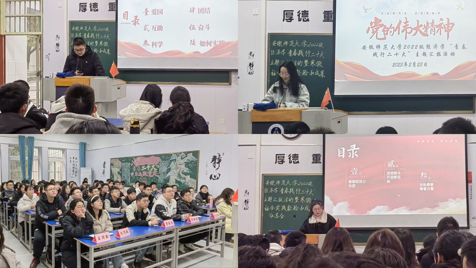 2月23日上午,2022级经济学专业在天门山校区北教学楼102教室开展以“青春践行二十大”为主题的交流活动,活动由思政委员杨博文同学主持。