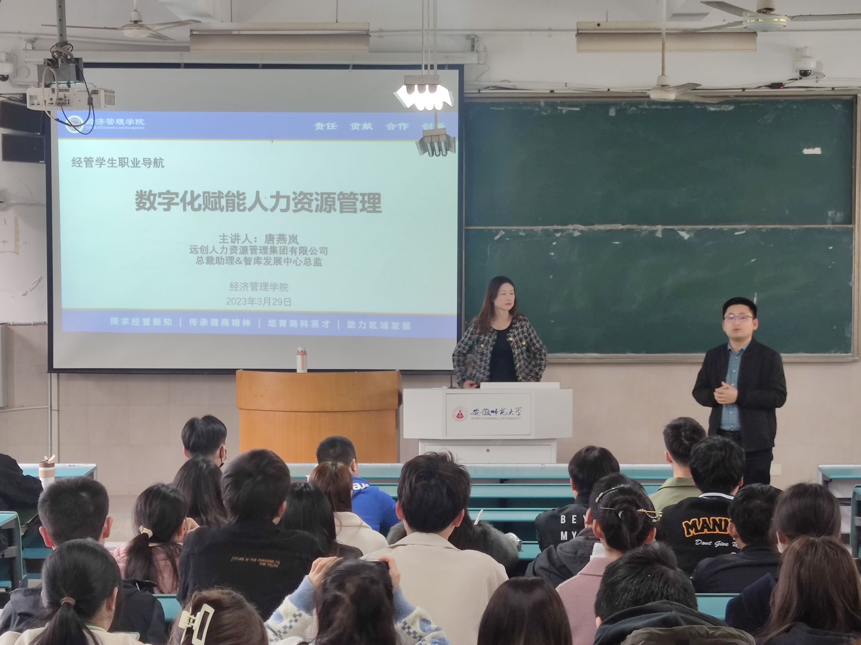 3月29日下午,公司2020级人力资源管理专业开展了职业发展主题班会。会议邀请了远创人力资源管理集团总裁助理唐燕岚做职业导航讲座,为同学们带来了“数字化赋能人力资源管理”的主题分享。班会由辅导员胡亮亮主持,2020级人力资源管理专业全体同学到场参加讲座。