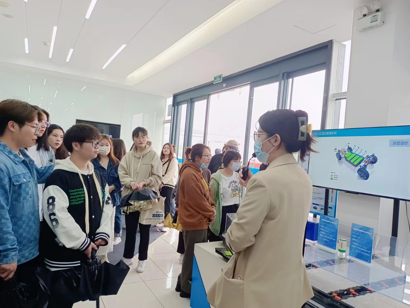 见习期间,奇瑞新能源人事经理结合公司荣誉墙带领同学们全面了解认知企业文化,系统介绍了公司的成长历程、整体架构、自研技术、发展成果等。师生走入焊装车间,专业技术人员讲解焊装生产线工艺流程和相关业务体系。此外,同学们按路线前往公司总装车间进行生产线观摩与相关业务流程的学习,了解车间产能规划与各装配线的实际工作情况。最后,专业人员就同学们的疑问进行一一解答,并建议同学们在校期间要多参加实践,多学习专业技能。整个参访过程气氛活跃,同学收获颇丰。