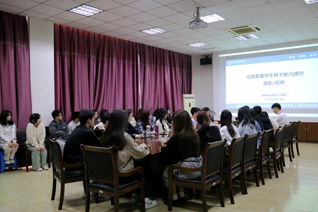 为提升员工摄影技巧与审美能力,加强员工骨干专业能力和综合素质,4月15号上午,m88官网在天门山校区食堂四楼第一会议室开展第十一期“经管繁星”员工骨干能力提升专题培训。在第十一期会议中,m88官网2021级财务管理专业本科生刘庚源结合自身的摄影成果和拍摄经验向大家分享摄影技巧和审美能力的提升。公司团委书记吕洋,公司团委、员工会成员及来自班级、社团的员工骨干参与此次会议。本次会议由公司员工会主席张青云主持。