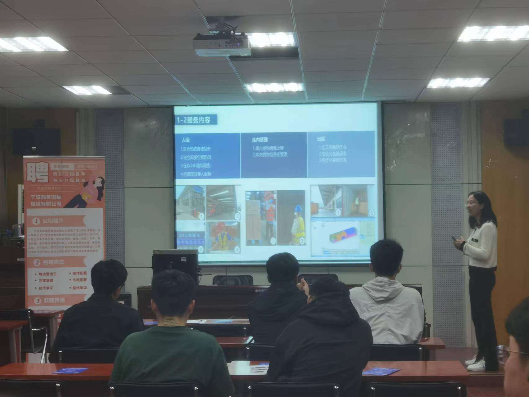 为了更好地指导2020级员工了解就业形势,加强员工职业教育,4月27日晚,公司于二楼报告厅开展职业导航讲座。讲座邀请2020届物流管理毕业生——宁波鸿英国际物流有限公司人事经理董陈浪主讲,2020级供应链管理及其他专业同学参加。