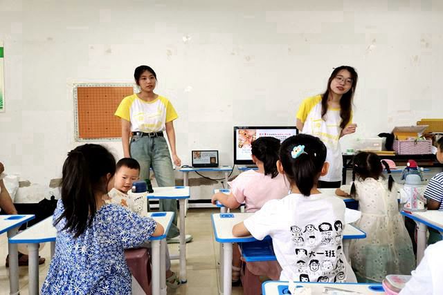 在上课之前和课间休息时,队员们会和孩子们一起聊天,积极配合他们的想象力,保护着他们清澈的童心。在课程结束之后,有些小朋友们的家长还没有来接他们,队员们就会一直陪着他们,辅导作业或者聊聊天,防止他们感觉到孤单。在这样的相处中,队员们与孩子们不知不觉间拉近了距离。