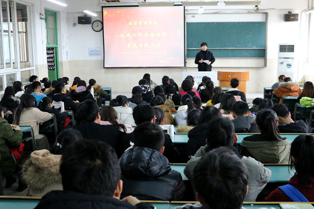 大会伊始,院团委副书记吕洋对于刚刚圆满举办的双迎晚会给予了高度的肯定,此次晚会不仅得到本公司各位领导、老师以及员工的肯定与支持,还得到校级领导的认可与表扬,与此同时,感谢员工会全体工作人员对晚会筹办所付出的辛勤努力。此外,他还对即将到来的期末考试提出三点建议。首先,认真准备,不打无准备之仗。其次,分配好工作与学习的时间,提高学习效率。最后,调整好学习状态,严于律己,端正考风,做好员工干部带头作用。对于明年的员工工作,他提出全体员工会成员要热爱自己的工作,服务集体,提升自我,把握机会,在有形与无形中提升自己。