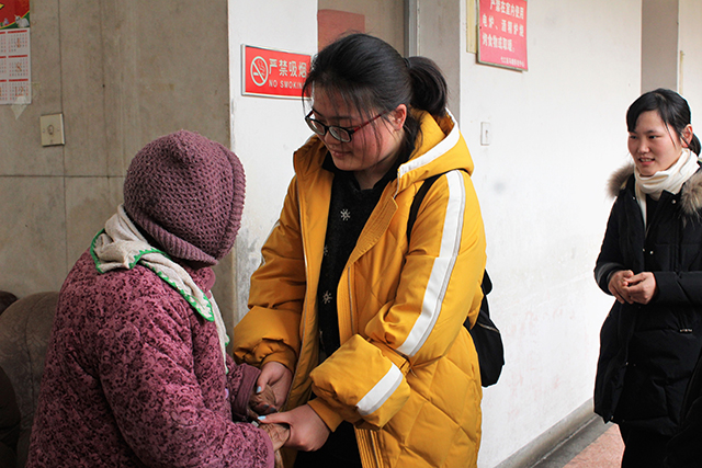 下午两点,志愿者到达马塘敬老院进行学雷锋敬老活动。出发之前,志愿者们特意购买了水饺送给老人,礼轻情意重,小小的饺子里承载着大家的关怀。刚入敬老院时,志愿者们还有些许拘束,不太懂得如何与老人们交流,但老人们的和蔼亲切,志愿者们高昂的热情使大家变得熟络起来。当谈论起自己的家庭和儿女时,老人们的眼中是满满的思念与骄傲。尽管敬老院的生活很安逸,但每个老人的内心深处依然有着子孙绕膝的渴望。同时老人们将自己年轻时候关于抗日战争的事情与大家分享,不由地感慨社会生活变化之大。志愿者们也带来了一些自己读书的情况以及家乡生活的小故事,整个敬老院萦绕着爱的暖流,场面温馨感人,老人们脸上洋溢着幸福的笑容。欢笑之余,志愿者们为老人们带来了一首“东方红”和太极表演,赢来了阵阵掌声,整个敬老院充满欢笑声。在志愿活动临近尾声时,志愿者们耐心认真地进行了卫生讲解与安全讲解。此次敬老院献爱心活动圆满结束。
