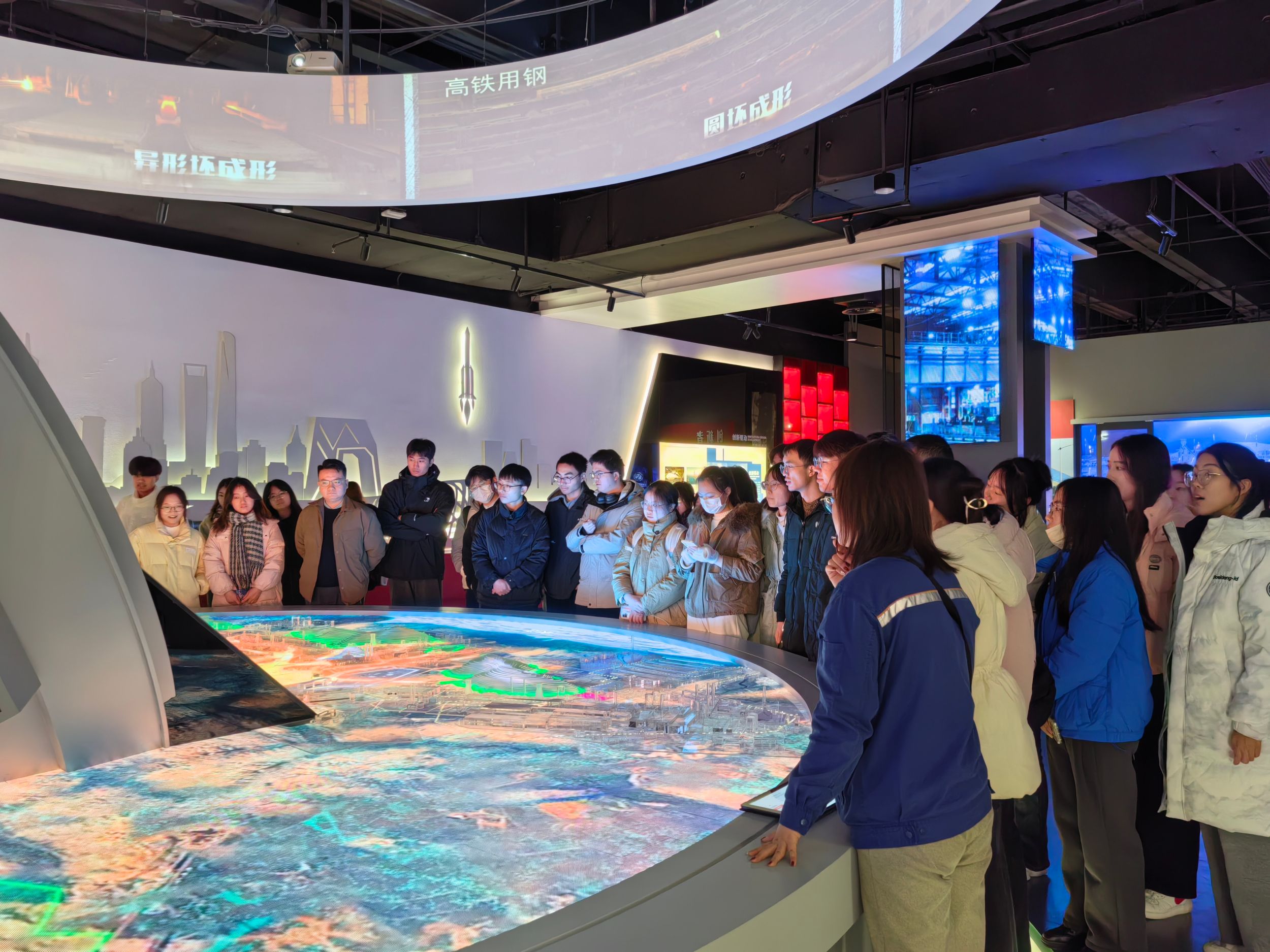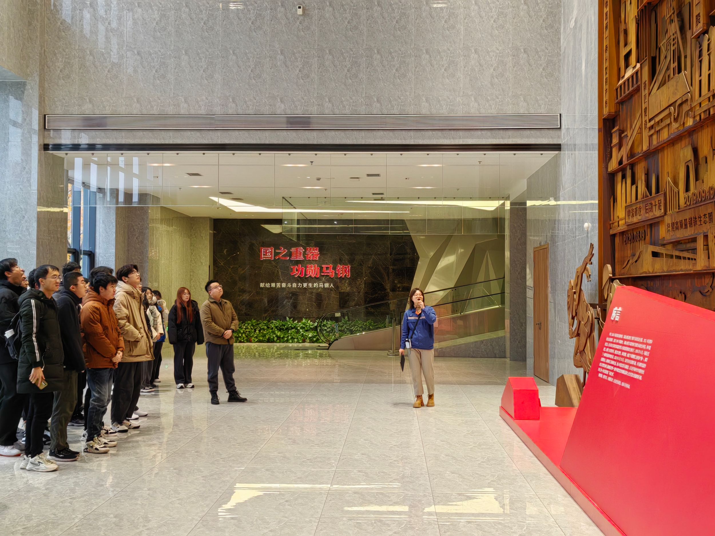 本次参观活动分两组进行。同学们首先来到马钢展厅,通过了解马钢的历史沿革、经营模式和产品,感受马钢为中国钢铁工业发展、国家经济建设做出的突出贡献。马钢深入贯彻新发展理念,加快转型升级,在高质量发展的道路上积极探索。同学们深深地被马钢产业报国、钢铁强国的努力感动。