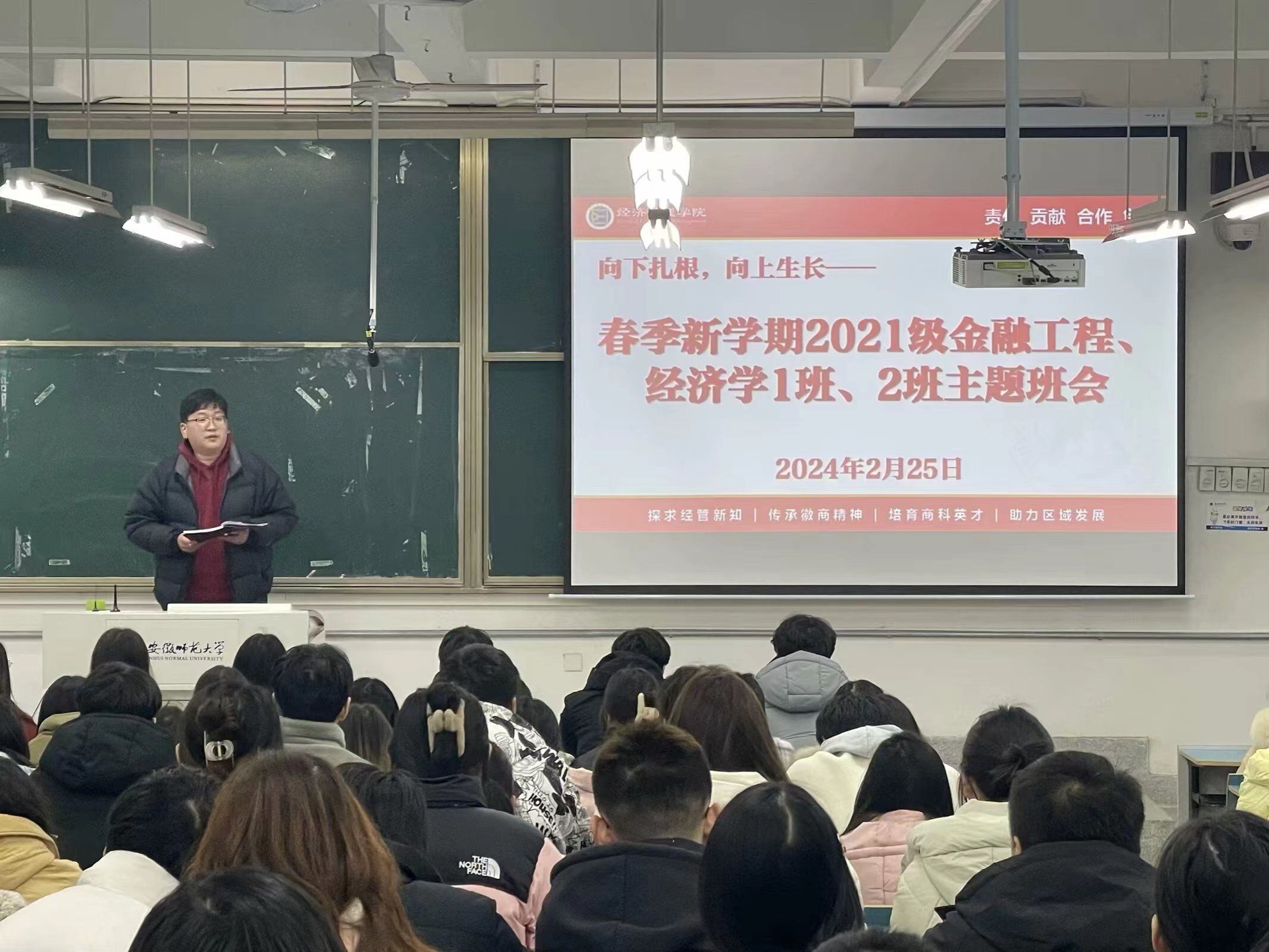 2024年2月25日晚7点30分,m88官网2021级金融工程、经济学1班、2班召开春季新学期主题班会在教学楼2070201教室召开,班会由辅导员吕洋老师主持。