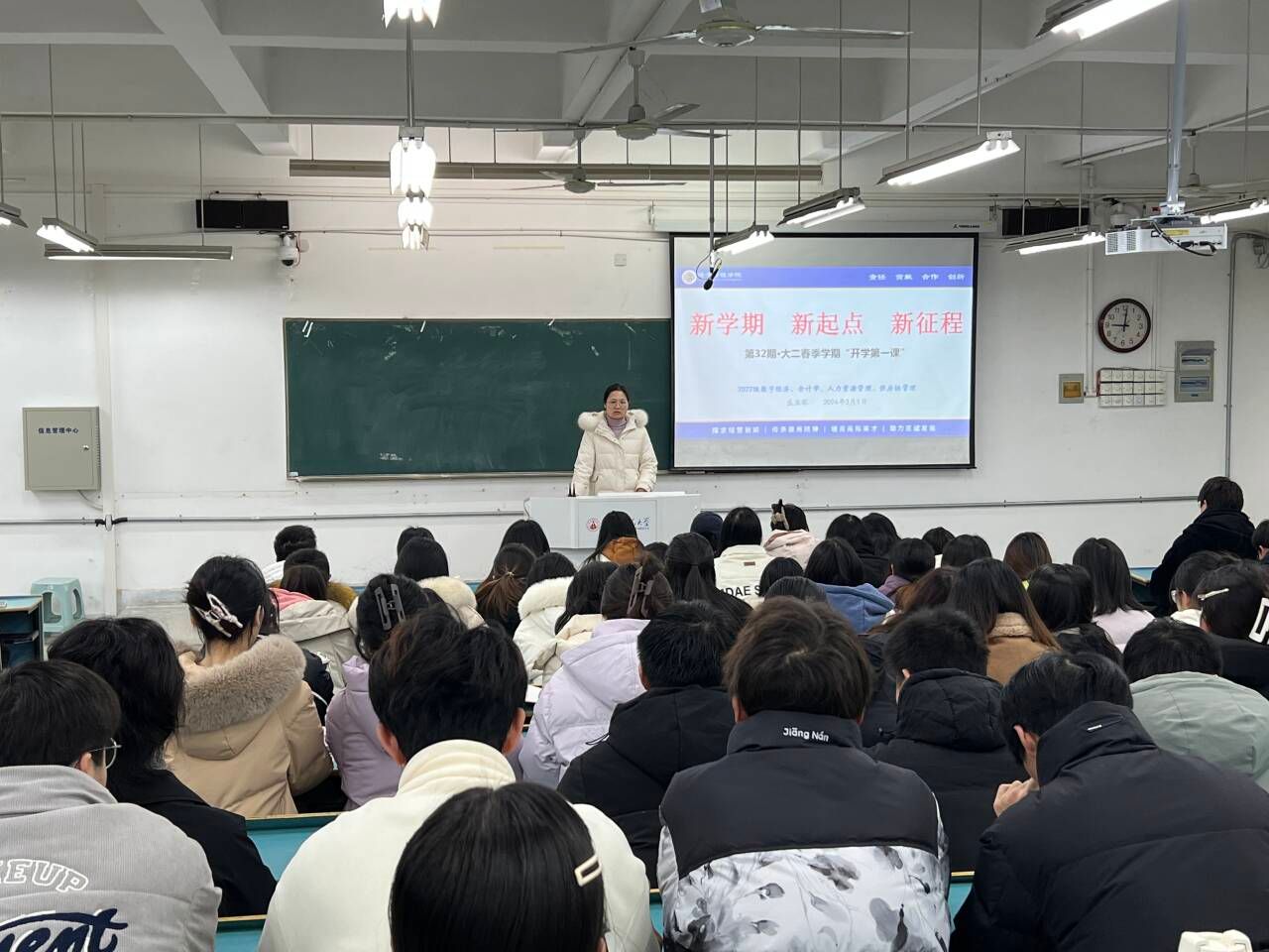 为明确新学期目标方向,帮助同学们回顾过去,展望未来,2022级数字经济、会计学、人力资源管理和供应链管理专业于2月29日开展“新学期、新起点、新征程”主题班会,会议由辅导员盛亚琴主持。