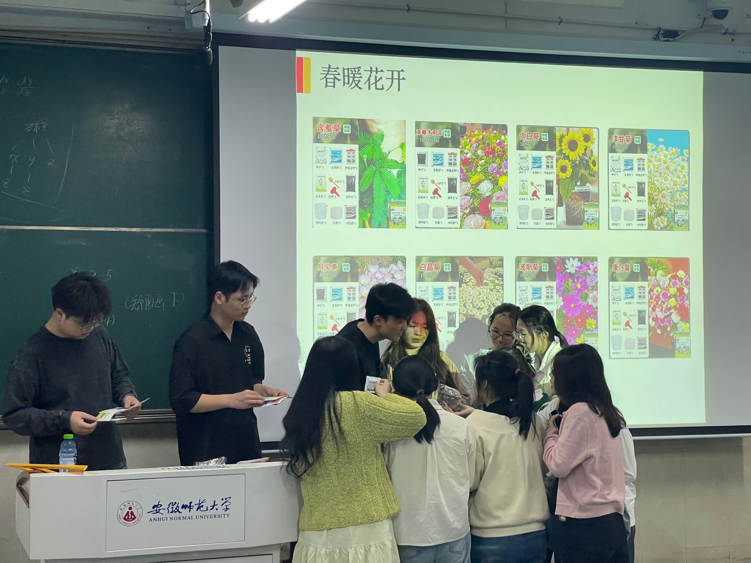 抢答环节的问题涉及应届生的认定标准、三方协议的签订流程及其重要性等,这些都是即将毕业的老员工必须掌握的知识。通过抢答的形式,不仅检验了同学们对相关知识的掌握程度,也激发了他们对这些问题的思考。答对的同学能够优先选择自己心仪的绿植品种,这种小小的激励让知识的学习变得更加生动有趣。