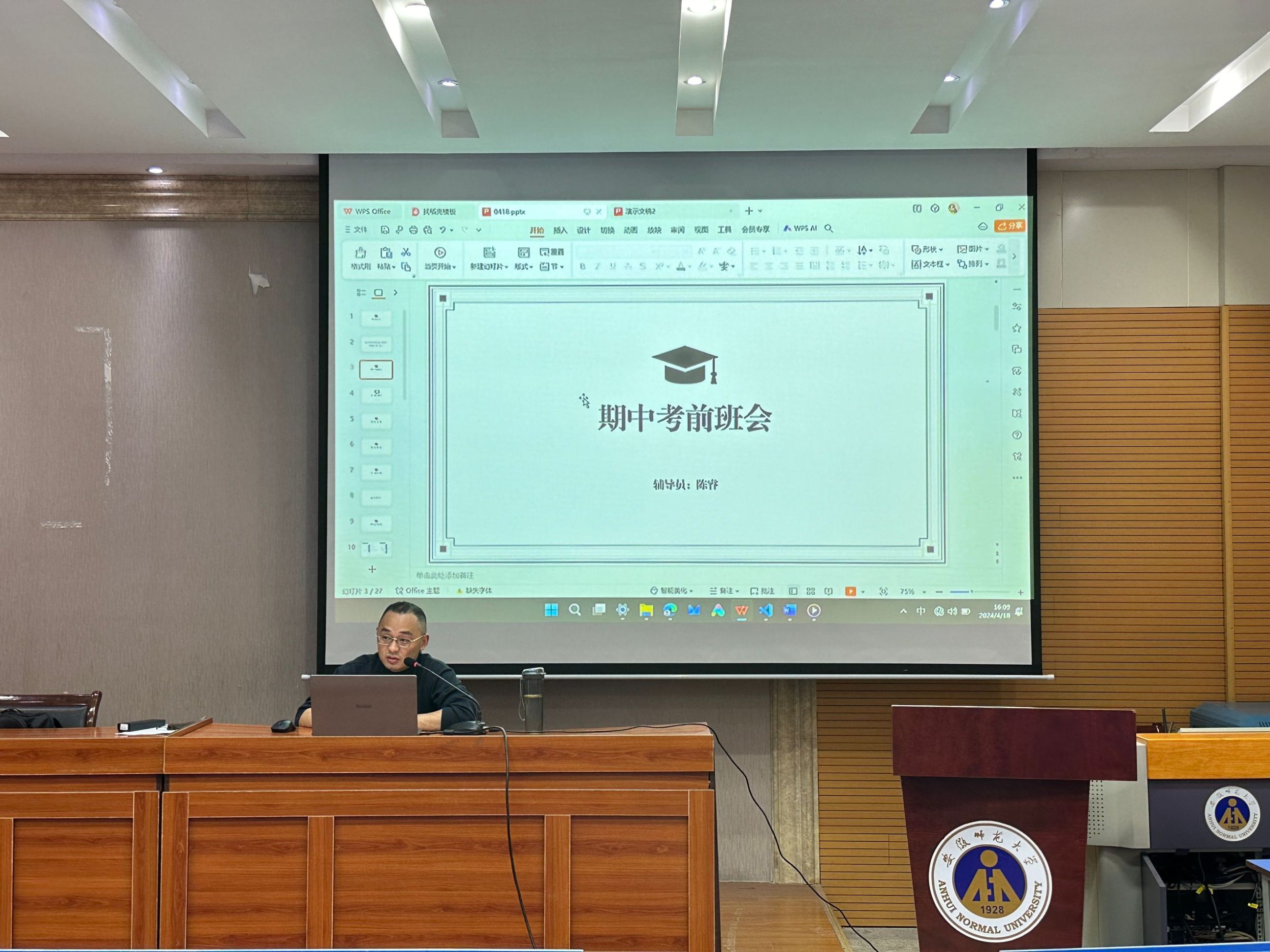陈睿首先首先强调了期中考试的重要性,并提醒同学们制定合理的复习计划,严格遵守课堂纪律,认真备考。他提到,考试不仅是对知识掌握程度的检验,更是对个人意志和品质的考验。希望同学们能够珍惜这段时间,充分准备,取得优异的成绩。
