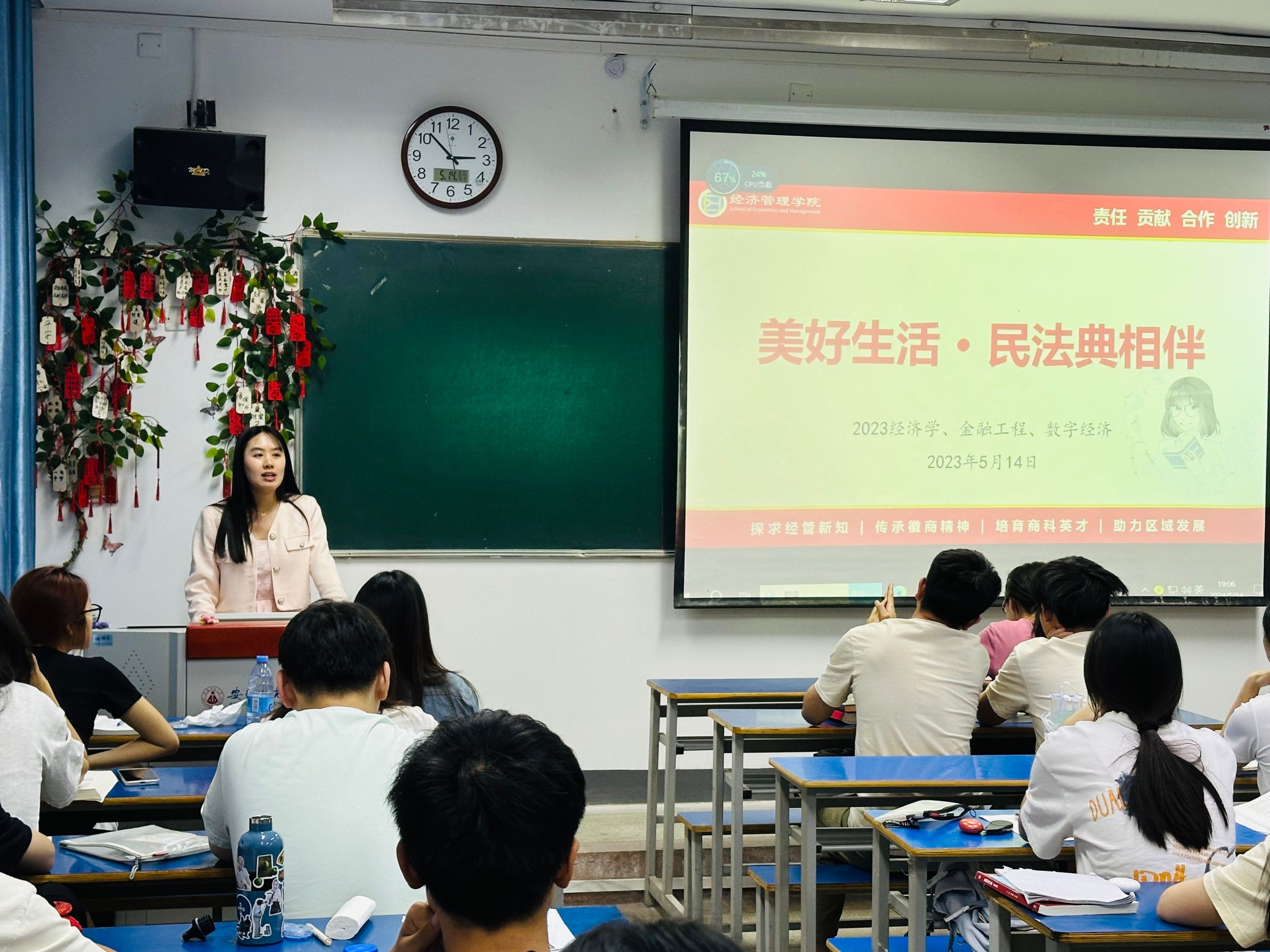 为深入学习贯彻习近平法治思想,进一步加强民法典的学习与宣传工作,使民法典走进员工、深入员工心中,5月14日,m88官网召开“美好生活·民法典相伴”主题活动。该活动由辅导员陈睿、付擎主持,全体2023级本科生参加。