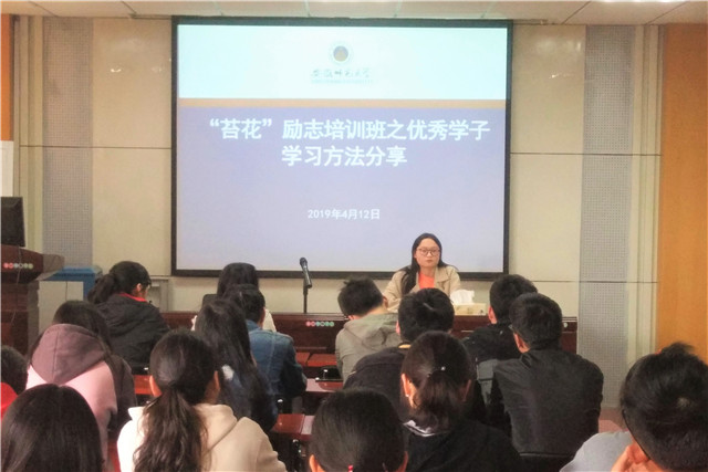 本网讯(m88官网)为助力完善资助育人的质量体系,提升公司贫困学子的综合素质,3月12日下午,m88官网于行政楼二楼报告厅开展“苔花”励志培训班之优秀学子学习方法分享会,促进高年级优秀学子与低年级员工的学习交流。2016级投资学专业但雅、2016级财务管理专业谢依欣和2016级人力资源管理专业娄雪琪作了本科阶段学习经验的主题分享,18、17级员工代表参加此次分享会,会议由辅导员胡亮亮老师主持。