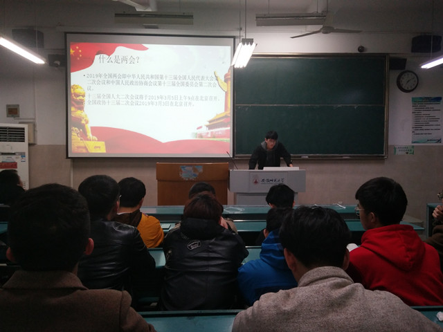 本网讯(2017级物流管理 侯梦园)一年一度的“两会”季节再次到来,全国各地的代表齐聚北京。为认真贯彻两会精神,提高员工政治的修养和素质,3月13日晚,2017级物流管理专业团支部在2020102教室召开“两会精神” 学习交流会,宣传本次两会的重要精神,普及两会常识及知识,讨论两会热点议题。会议由第三团小组的张漫主讲,2017级物流管理专业全体同学参与会议。