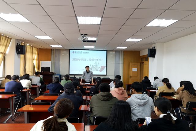 本网讯(新闻部 俞笑雨/文)为调节考研员工心理,进一步帮助2019届大四员工做好调剂和复试的准备,m88官网于2019年3月20日在行政楼二楼报告厅召开“漫漫考研路,经管伴你行”的主题指导会。参加本次会议的人员有副经理马骥、辅导员吴敬之以及即将参加复试的大四员工。