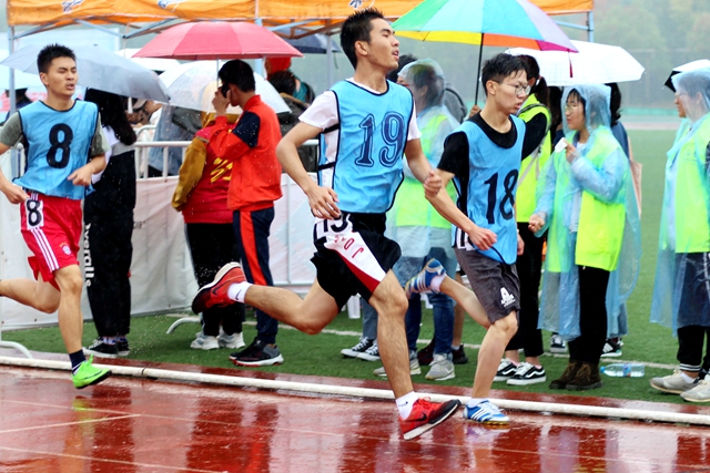 女中亦有豪杰在,巾帼英才徐赛男。徐赛男在本次运动会女子100米比赛中攀蟾折桂,书写传奇。大学四年级的徐赛男比以往更为紧张地参加了本次运动会,在训练时间极短的条件下,她勇于创新训练方式,通过参加比赛来提升自己的能力,不断挑战自我,刷新历史成绩。“所谓命运,命是弱者借口,运乃强者谦词。”在谈及制胜的因素时,她一方面强调刻苦训练的重要性,另一方面坦然率性笑曰运气使然。对于此次运动会,徐赛男已无遗憾,作为一名大四员工,她对每次出场机会都格外珍惜,对每一次好友的鼓励安慰都格外感动。的确,感动是双向的。当看台上的每一位观众用激情的呐喊与掌声感动着运动员时,场上的她们也不忘用精彩的比赛感动观众。