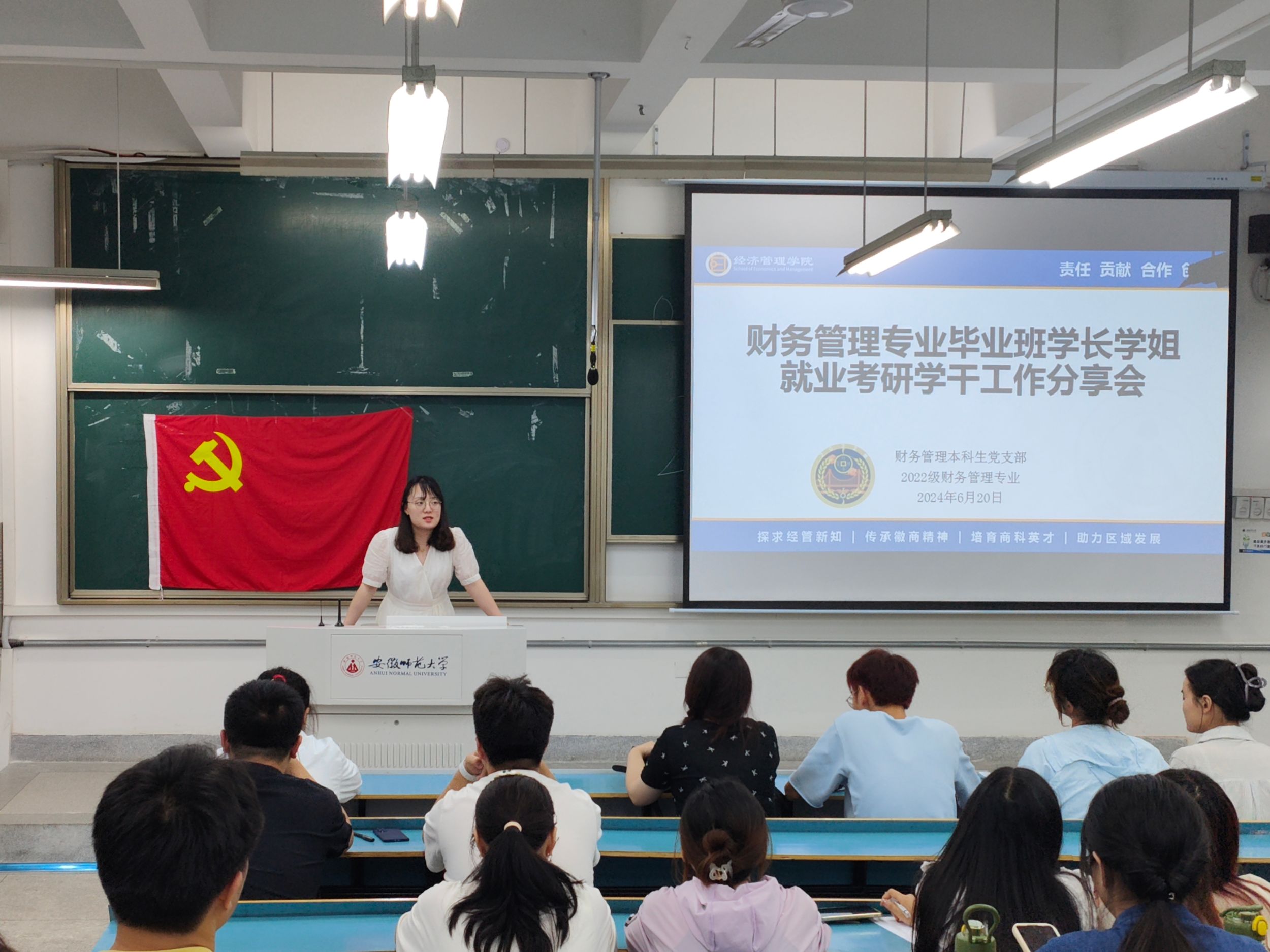 为充分发挥朋辈示范引领作用,为员工考研就业保驾护航,6月20日晚,2022级财务管理专业诚邀2020级经济学、财务管理专业学长学姐开展就业考研学干工作经验分享会。会议由辅导员李佳颖主持,2022级财务管理全体员工参加。