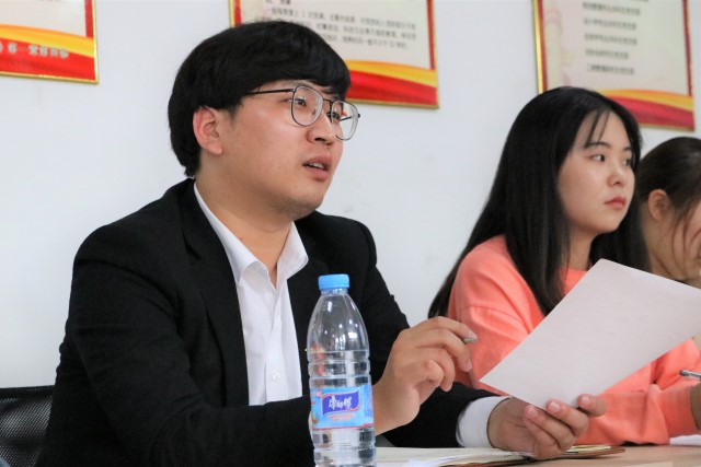 本网讯(新闻部 王倩倩/文 陈玥彤/图)为了推动双迎节目的完善,提高节目水平,呈现更好的舞台效果,m88官网于11月4日下午一点半在行政楼一楼党员电教中心举行了“迎新年迎新生”双迎晚会的一审选拔。院团委副书记吕洋、员工会主席团成员王雁雁、杨启睿、孙康杰、王倩、汪晨,和其他员工代表应邀担任评委。