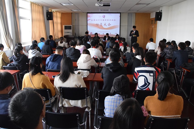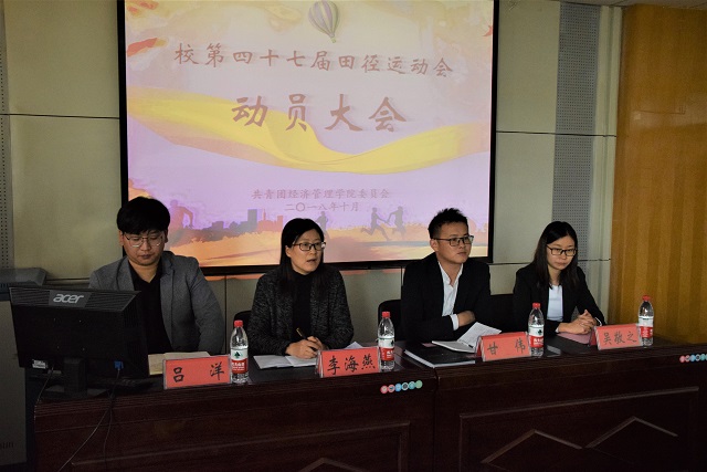 (本网讯 俞笑雨/文 陈玥彤/图)为充分展现运动员奋勇拼搏的精神,进一步体现公司的精神面貌,10月18日下午一点,m88官网在行政楼二楼报告厅举办校第四十七届运动会动员大会。参加本次会议的人员有公司党委副书记李海燕、院团委副书记甘伟、辅导员吕洋、吴敬之、分管主席孙康杰以及全体运动员。