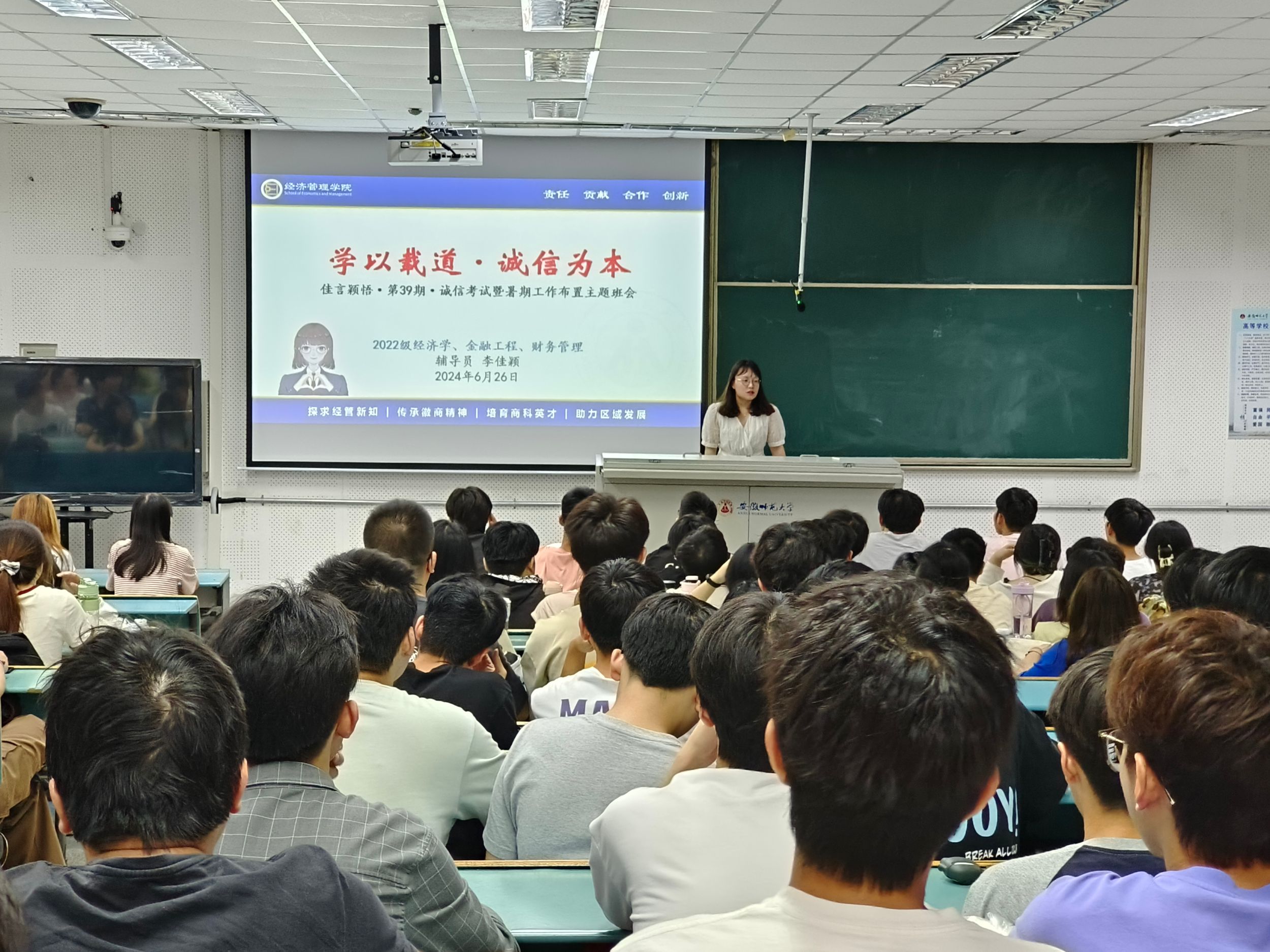 为进一步规范诚信教育,严肃考风考纪,6月26日至27日,2022级经济金融财管分专业开展诚信考试教育暨暑期工作布置主题班会。会议由辅导员李佳颖主持,2022级财务管理全体员工参加。