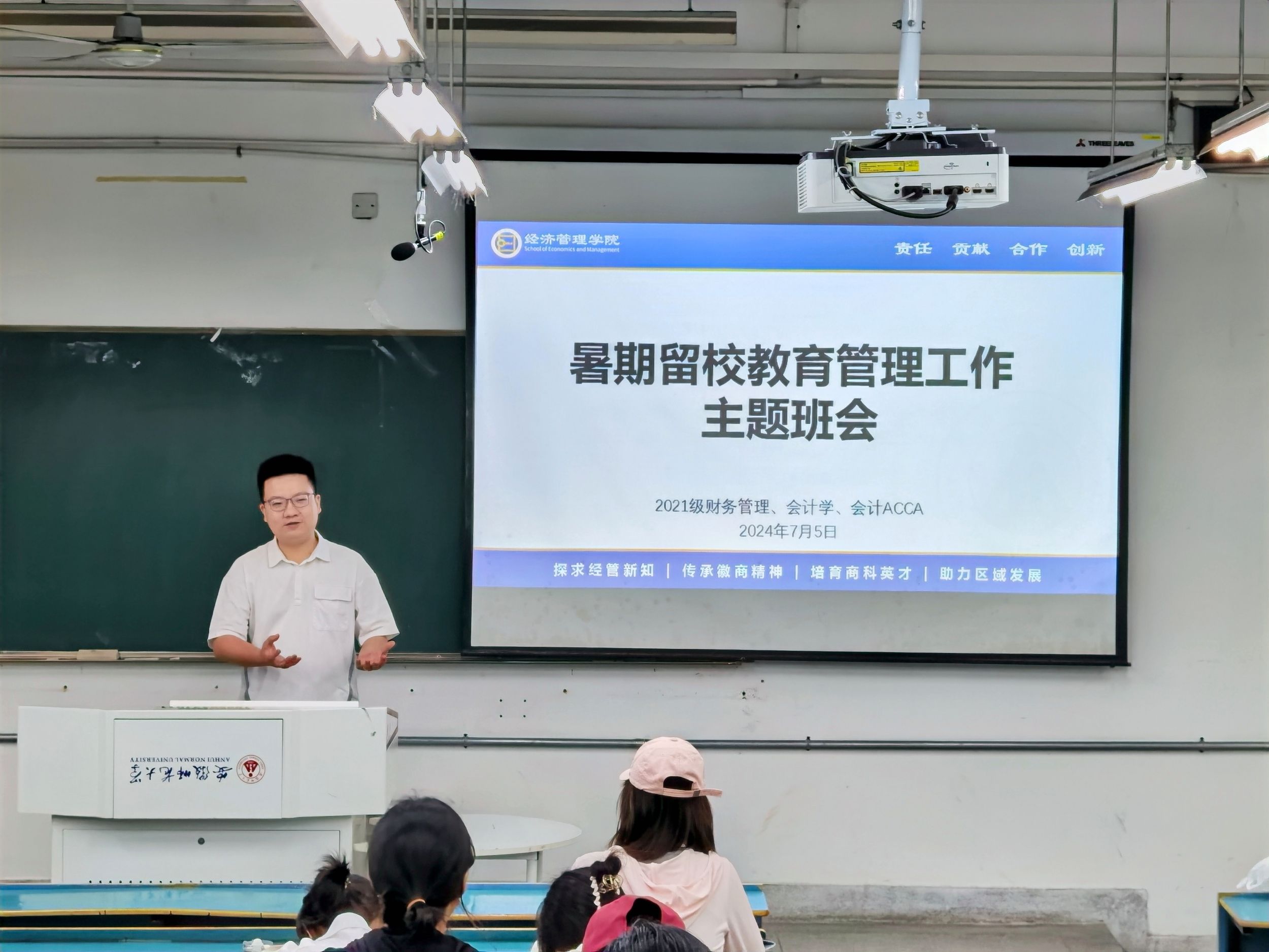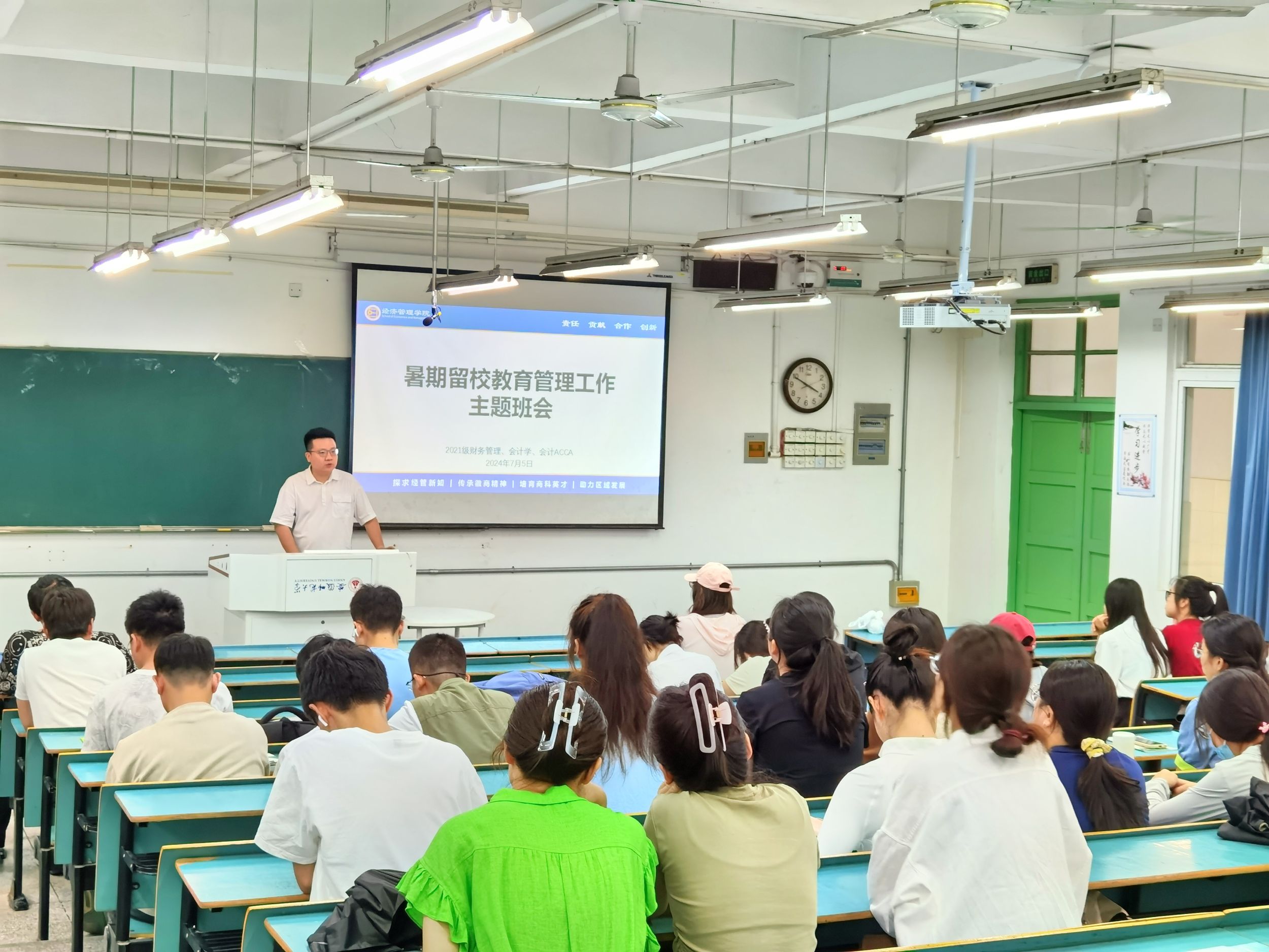 为进一步做好同学们在留校备考期间的学习、生活、安全等方面的管理工作。7月5日下午,m88官网2021级财务管理、会计学、会计ACCA班全体暑期留校员工在7号楼101教室召开了暑期留校教育管理工作主题班会,会议由辅导员刘胡海主持。