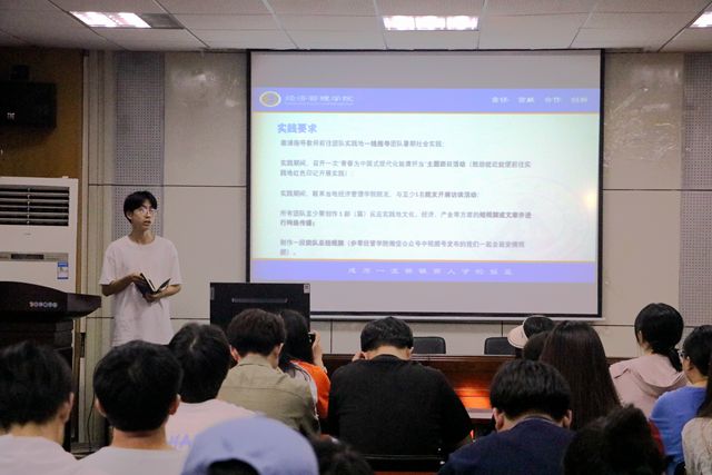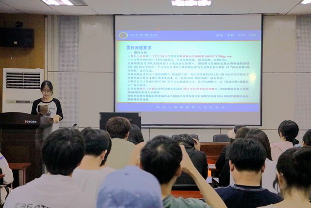 陆旻语宣读宣传要求,对实践简报、图说实践、时间日记、新闻稿、官Q、视频等发布内容和要求进行简要说明,并提醒大家注重投稿方式。