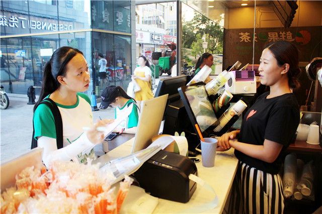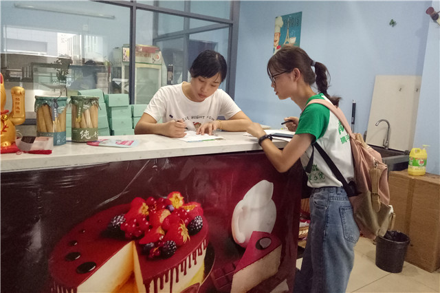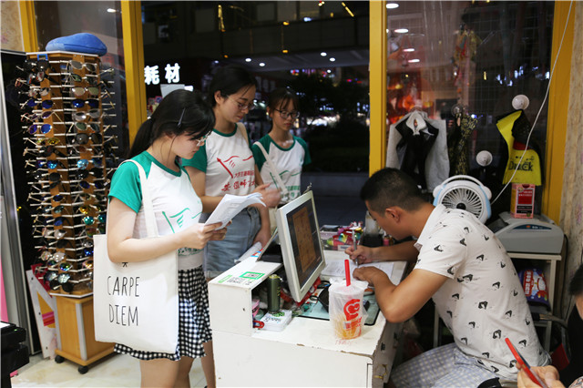 在总结经验后,下午,全队来到中央城,下午人流量少,且这里食品类商铺多,问卷成功率高且队员配合默契,为调研的顺利开展带来诸多优势。