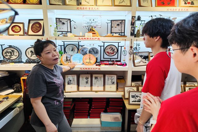 “千里之行,始于足下。”为了进一步了解芜湖铁画的市场销售情况,团队成员分别前往芜湖开勇现代铁画艺术有限公司、芜湖工艺美术厂铁画销售中心以及芜湖古城飞龙铁画进行调研。他们与销售人员和消费者进行交流,了解铁画市场的需求和发展趋势,为铁画的市场推广提供了有益的参考。