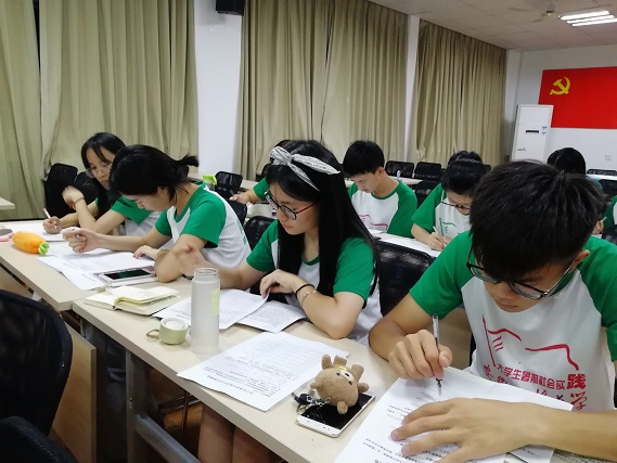 7月18日晚全员召开最后一次准备会议,指导老师方昶现场指导叮嘱,万事安全为先。问卷终于发到每人手中,其中心酸,人人可知。明日艰辛,诚知非远;队员们每人首先试做了一份问卷,松下一口气,同时也有了心里准备。万事俱备,只欠东风。尽管准备阶段耗时很长,但并未深入实践,纸上得来终觉浅,绝知此事要躬行。虽知前路坎坷,但众心也是期待已久,可以说是寸阴若岁。