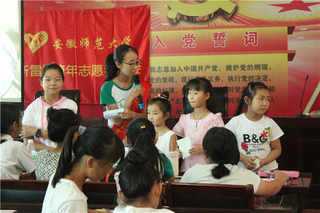 图/周浩宇)“书者,散也,欲书先散怀抱”。所谓书法,是性情的发散和表达。千百年来,洗砚,磨砚,挥毫,行云流水的动作中体现出中华民族自信大方,开放包容的文化姿态。隶书,行书,楷书各种字体各有特色,于宣纸上演出一幅活灵活现的人生舞台剧。因此,7月20日,为了传承书法文化,培养孩子们的中华情怀,m88官方网站登录地址新雷锋志愿者协会的志愿者们来到了芜湖市繁昌县新林村开展了“执笔写就中华字,挥墨铸就中华情”的实践活动。