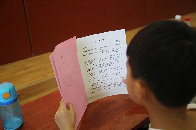 活动的第一个环节是猜歌名。为了更方便地教小朋友,志愿者首先把活动要教唱的儿歌歌词发放了下去,让小朋友熟悉一下,志愿者则用手机播放事先准备好的儿歌,小朋友们则竖起耳朵仔细听歌曲旋律。《找朋友》、《小兔子乖乖》、《春天在哪里》、《两只老虎》等这些耳熟能详的儿歌当然没难得住小朋友们,基本上歌曲播放还不到两句,很多小朋友都已经举起手说出了答案。每个小朋友的积极性都很高,教室里呈现的都是孩子们高高举起手的画面,甚至在猜歌名环节结束后,小朋友都还意犹未尽,还要求志愿者再多放几首。
