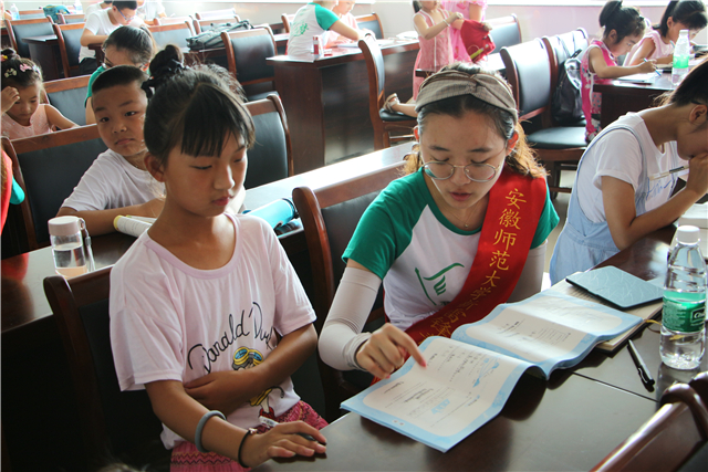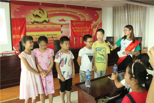 课堂中,队员们问小朋友这堂课的感受,他们回答道:“我觉得这次的英语课好好玩啊,我们的老师上课我感觉又难又无聊”。提到他们的收获时,他们的脸上洋溢着兴奋激动的神情,“我感觉经过这次英语课,我没有那么害怕英语了。而且,以后如果我碰到外国人的话,我就可以更好地与他们交流了。”听到他们的回答,志愿者们倍感欣慰。用英语歌曲促进英语教学的方法大家早就有所耳闻,但是在芜湖市繁昌县平铺镇的公司中,由于主客观条件的限制,这种方法可能并不能得到很好的施行。经由今天的活动,这里的小朋友们见识到了英语的魅力,重新建立起对于英语的自信。更宝贵的是,他们的求知欲被激发并得到了发展。在以后的学习和生活中,相信他们也会保持着这份初心,砥砺前行。